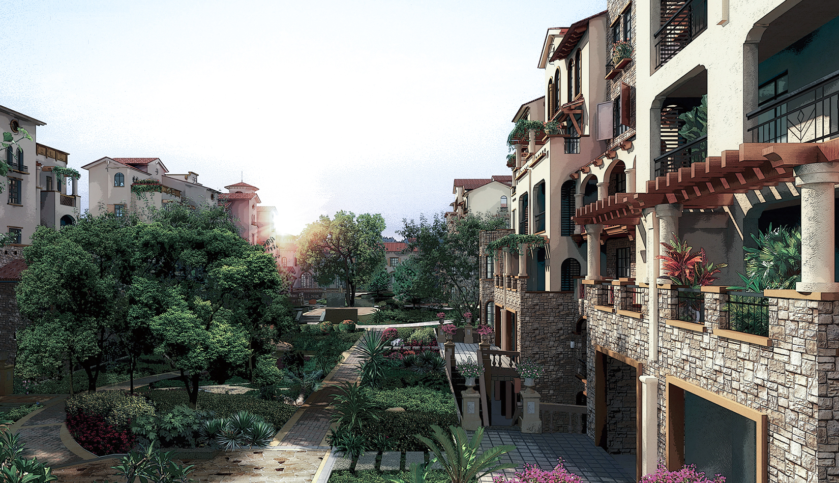花園洋房“戶戶有故事、層層有退臺(tái)”營造出一個(gè)亦靜亦動(dòng)、休閑而浪漫的濱海坡地小鎮(zhèn)的生活氛圍,也體現(xiàn)了該組團(tuán)的和諧與人文環(huán)境。