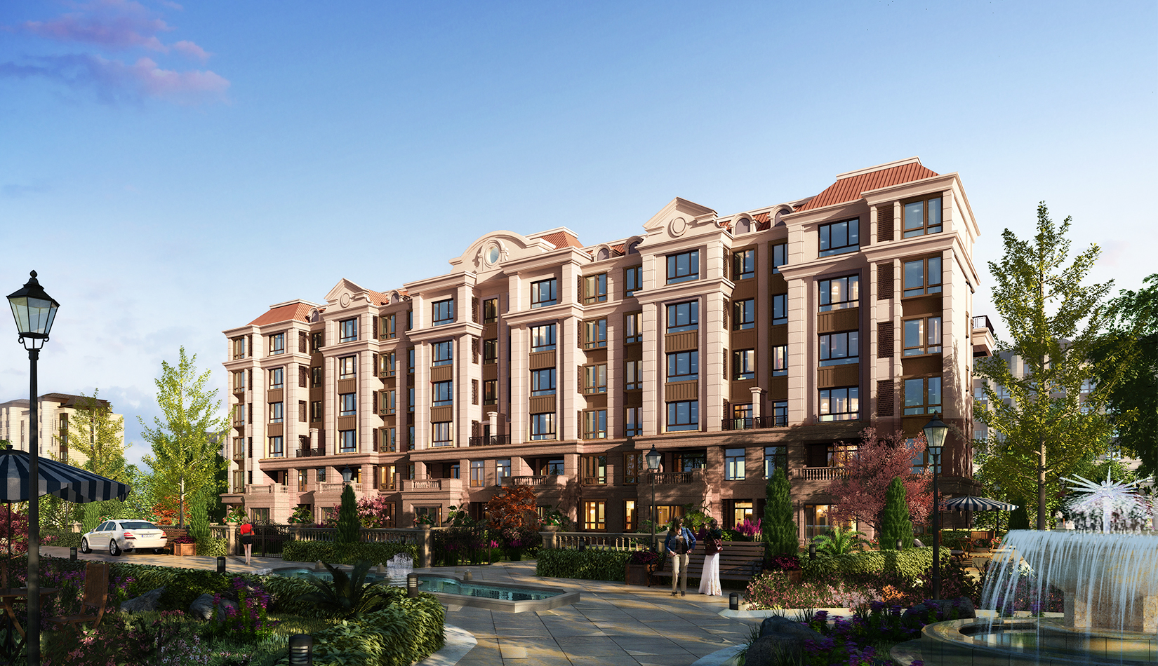 該項目設(shè)計以聚核、溝通、布局、點睛為規(guī)劃理念,打造一個高品質(zhì)水景花園社區(qū)。