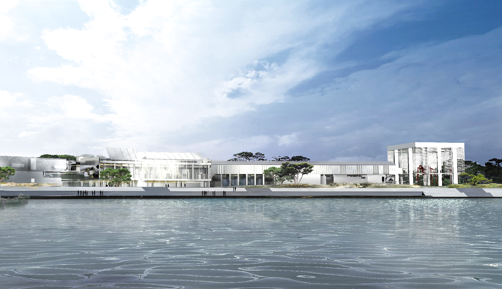 簡潔典雅的設計風格,與濱海自然環(huán)境相協(xié)調(diào),同時聘請世界級景觀設計大師擔綱景觀設計,體現(xiàn)了以美術館為主體的、以藝術創(chuàng)作、藝術展覽和藝術教育為主題的建筑和景觀空間,為當?shù)厥忻窈椭型庥慰吞峁┮粋€與自然、與藝術充分交流的花園,為藝術家提供一個自由的、充滿各種可能性的創(chuàng)作基地。