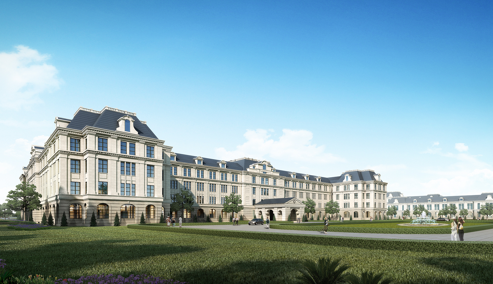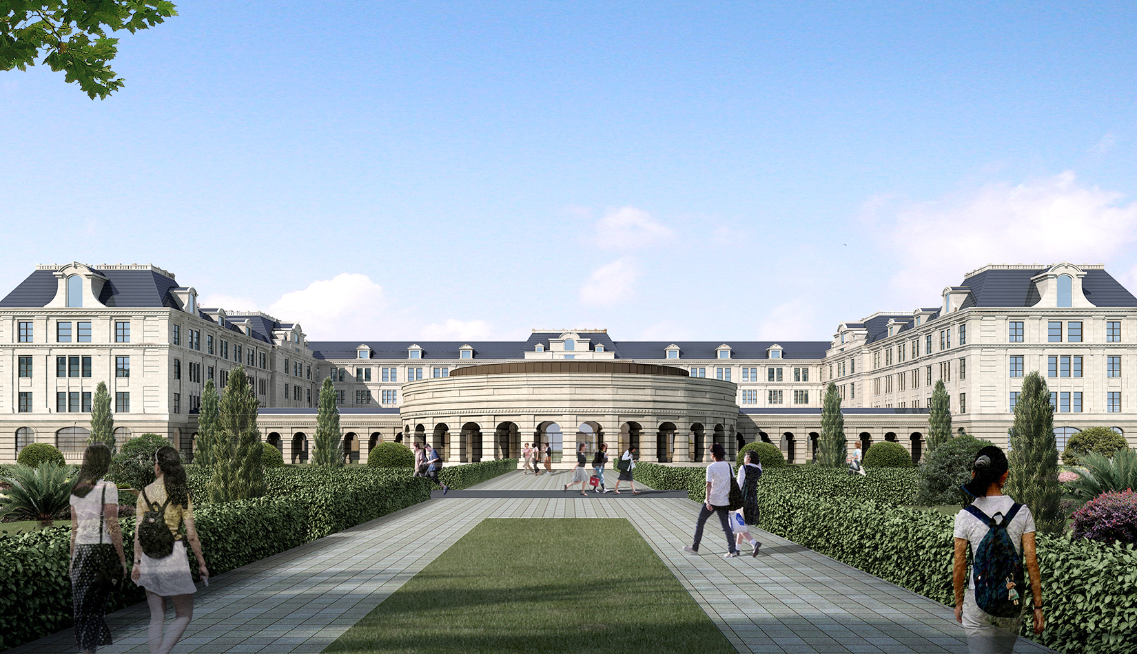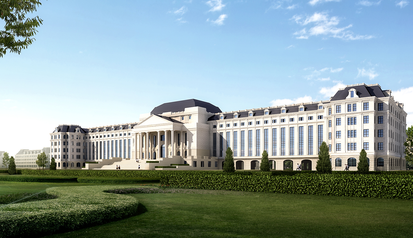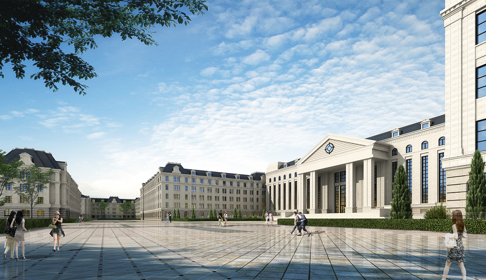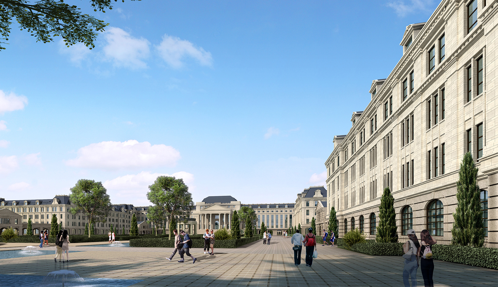 注重中軸對(duì)稱關(guān)系與建筑的對(duì)景,注重廣場(chǎng)所形成的儀式感