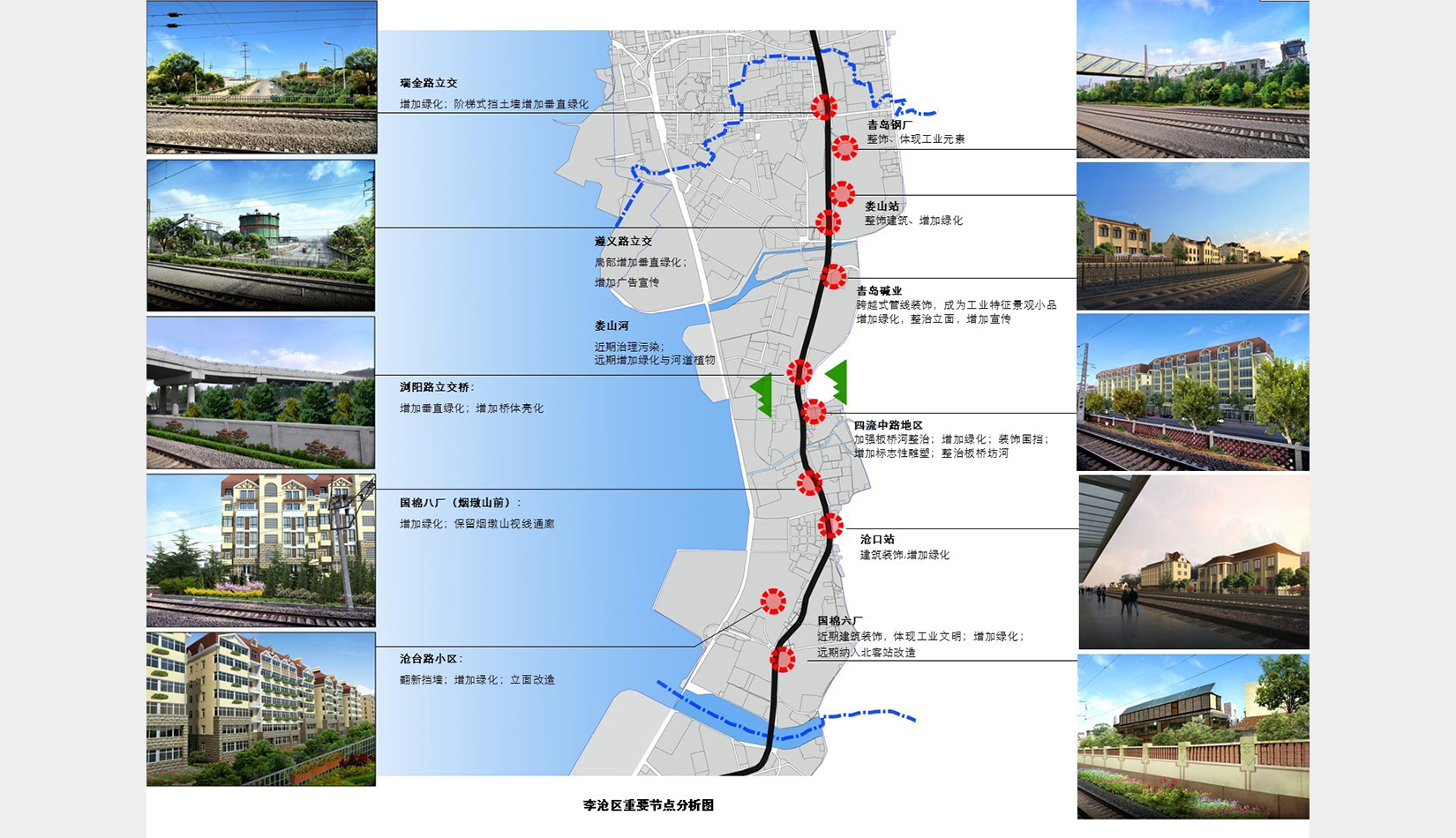按照”一個目標、分期實施、統(tǒng)一組織”的總體要求,規(guī)劃將鐵路沿線打造成為:體現(xiàn)青島城市規(guī)劃建設(shè)與管理水平的窗口; 展示青島城市熱情友好與和諧的笑臉;感受青島特色魅力與城市功能優(yōu)化提升的風(fēng)景線。