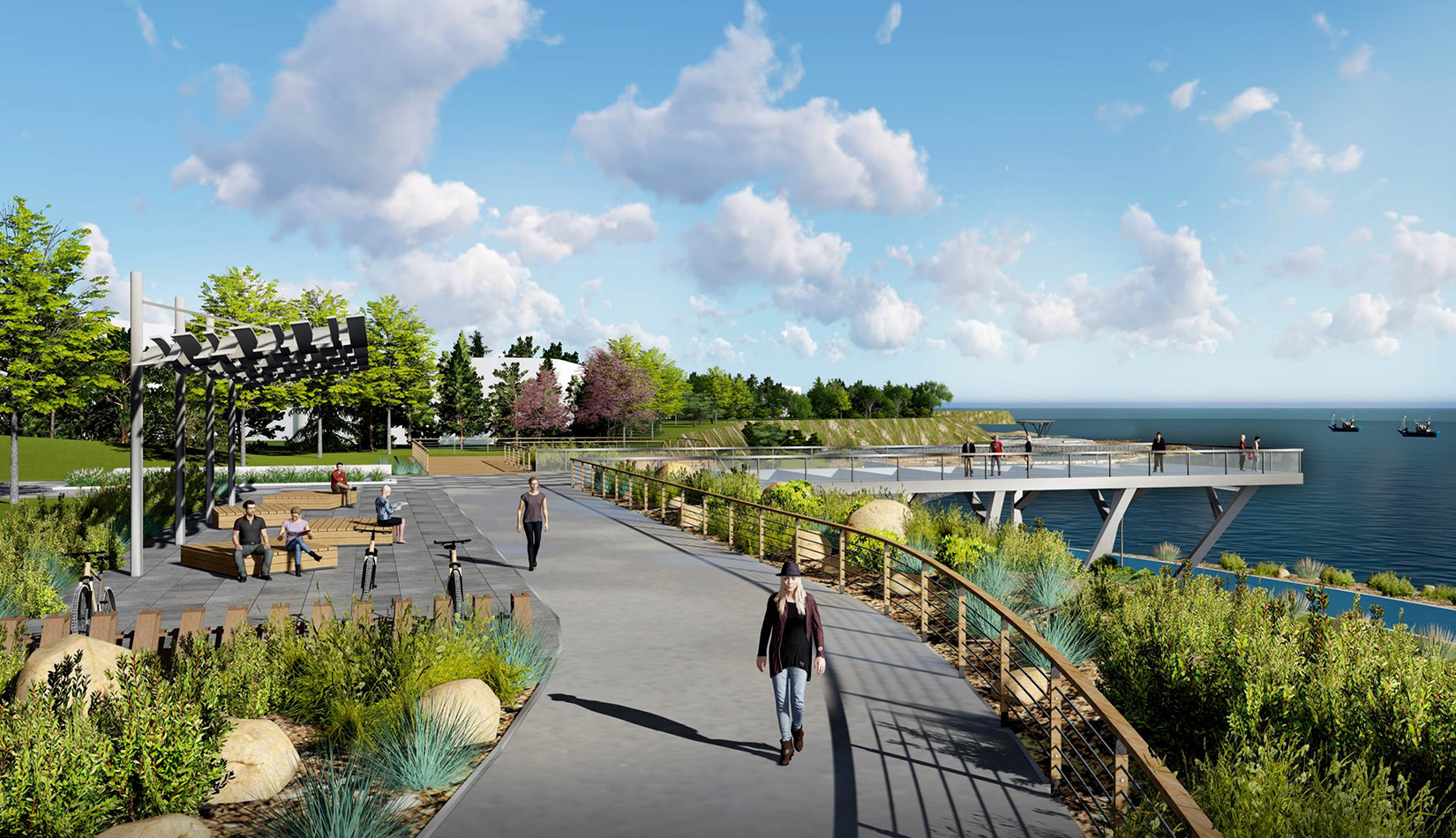 將藍(lán)谷濱海岸線打造為“海洋科技與海洋生活體驗(yàn)的創(chuàng)新典范”,傳遞藍(lán)谷海洋氣質(zhì)的城市名片  參與海洋文化體驗(yàn)的濱海公園  認(rèn)知海洋科技的城市客廳。